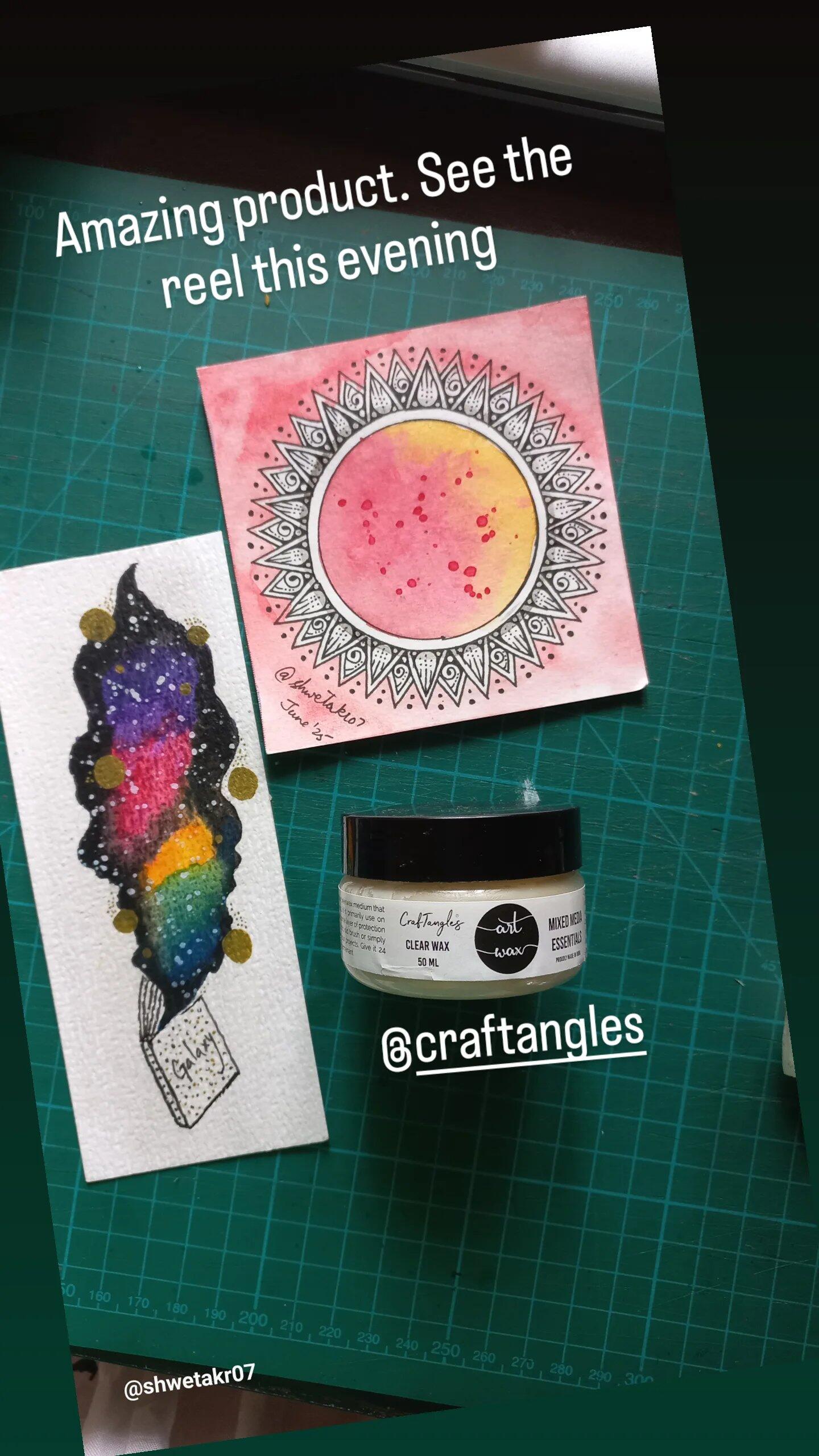 CrafTangles art wax is a clear beeswax medium that adds polish to your wooden projects. Use a cloth, old brush or simply fingers to apply wax over your projects. Give it 24 hours to air dry for it to be permanent