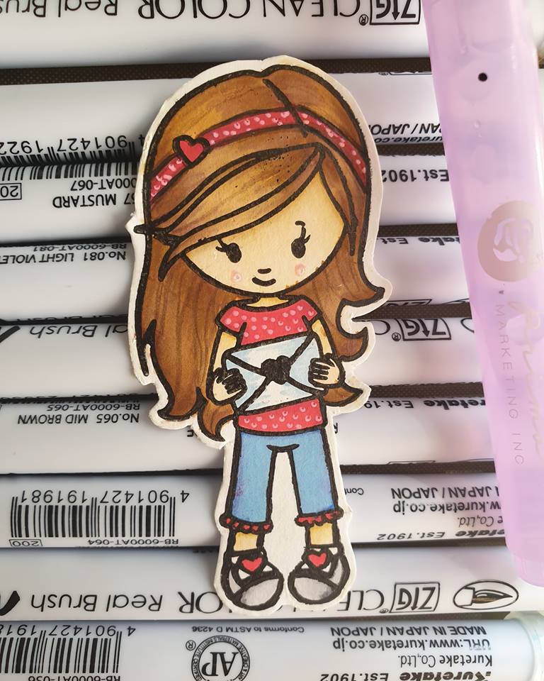 This pack contains a central girl stamp and various sentiments as shown in the image.