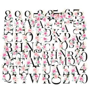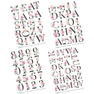 This package contains 4 A5 sheets of floral alphabet and numbers stickers as shown in the image