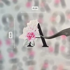 For reference, the larger alphabet A measures approximately 4 cm by 4 cm, as shown in the second image