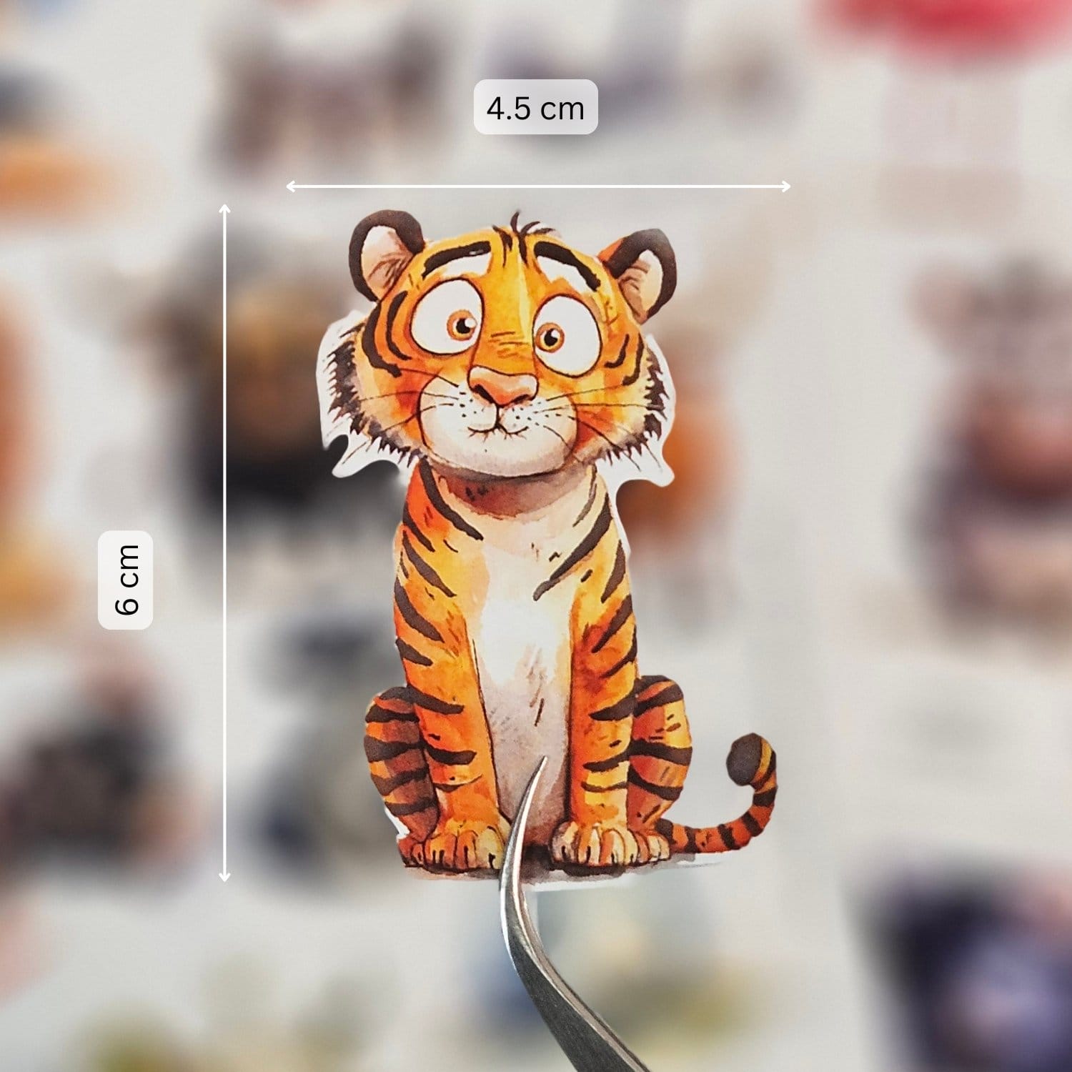 For reference, tiger animal measures approximately 4.5 cm by 6 cm as shown in the second image