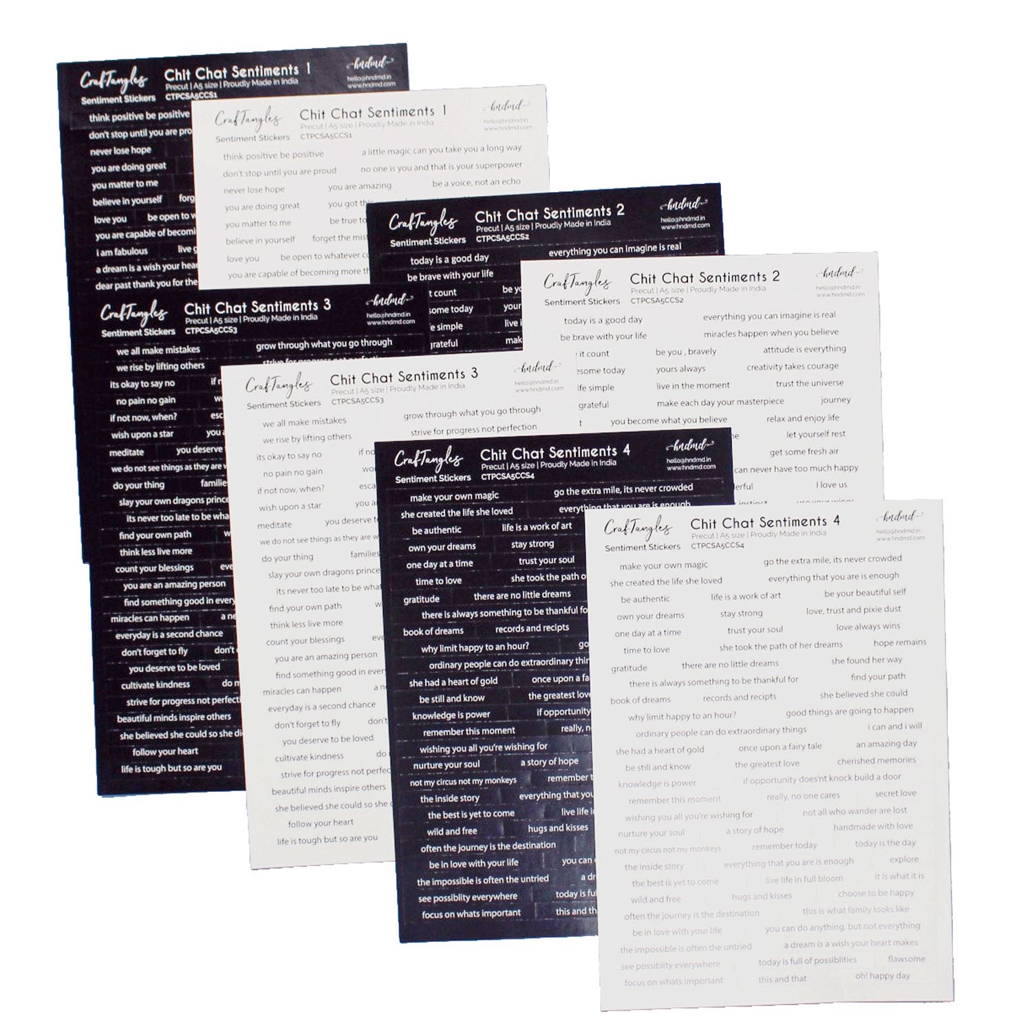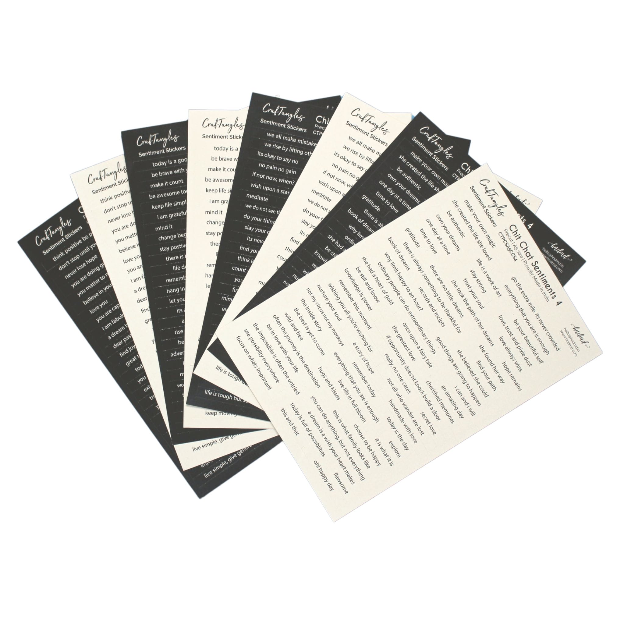 This Chichat Sentiment combo package contains eight A5 sheets of stickers, four in black and four in white.