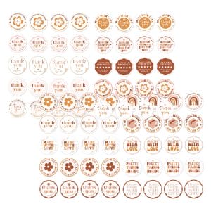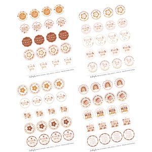 This package contains 4 A5 sheets of colourful thank you and small business-related feedback stickers as shown in the image