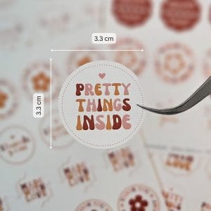 For reference, one of the small business stickers measures approximately 3.3 cm in diameter as shown in the second image