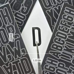 For reference, larger alphabet ‘D’ measures 1.23 cm by 2.9 cm and smaller size ‘D’ measures 0.85 by 2 cm as shown in the second image