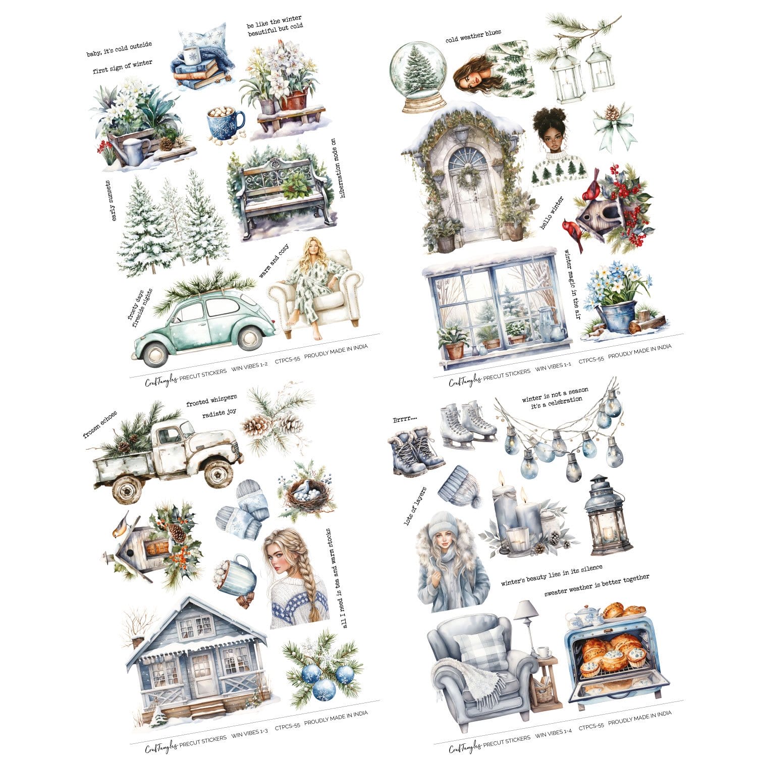 This package contains 4 A5 sheets of colourful, trendy winter-themed stickers, along with related quotes as shown in the image