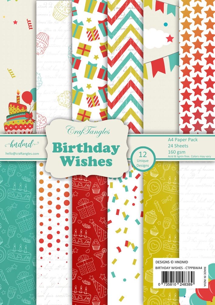CrafTangles Scrapbook Paper Pack – Birthday Wishes (A4)