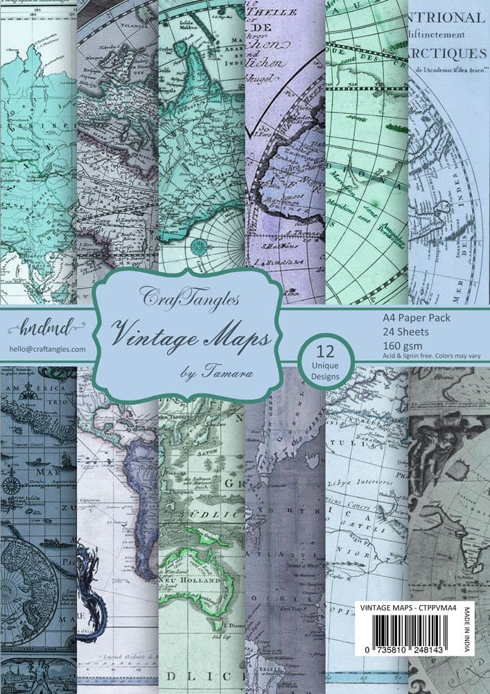 CrafTangles Scrapbook Paper Pack - Vintage Maps (A4)