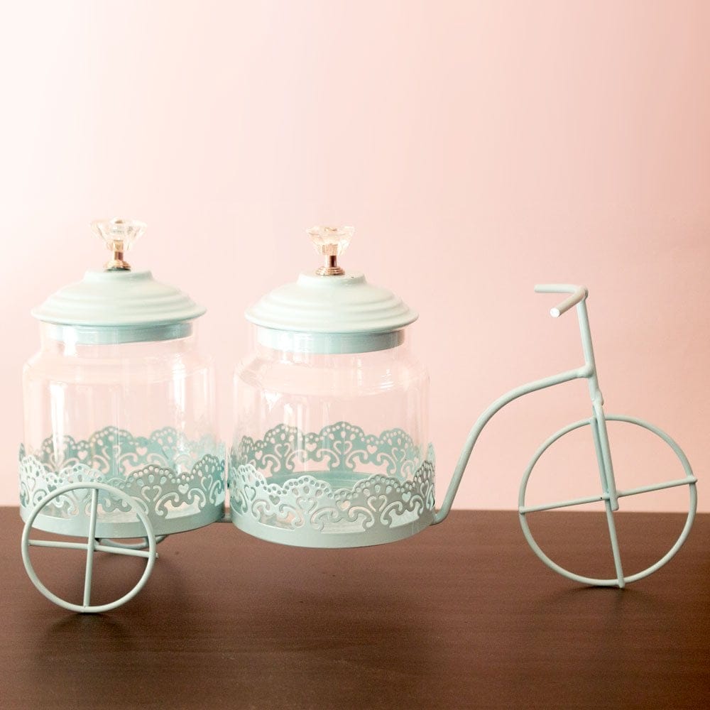 Decorative metal cycle with 2 glass jars (Baby Blue)
