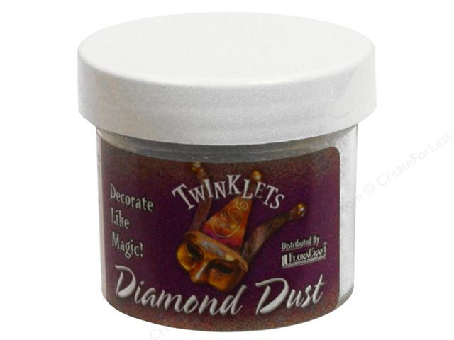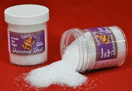 Diamond Dust Crystal Twinklets in a 3 ounce/85 grams jar. Decorate like magic! Apply craft glue to object and sprinkle with Diamond Dust shake off excess. The secret to Diamond Dust is that is it not just plastic glitter rather it is finely ground glass that gives that extra sparkle.