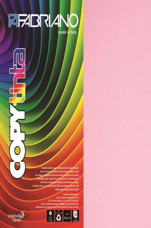 Fabriano Copy Tinta Unicolor is Uncoated woodfree paper, internally and externally coloured. Optimal quality. An ample and vivacious range of colours.