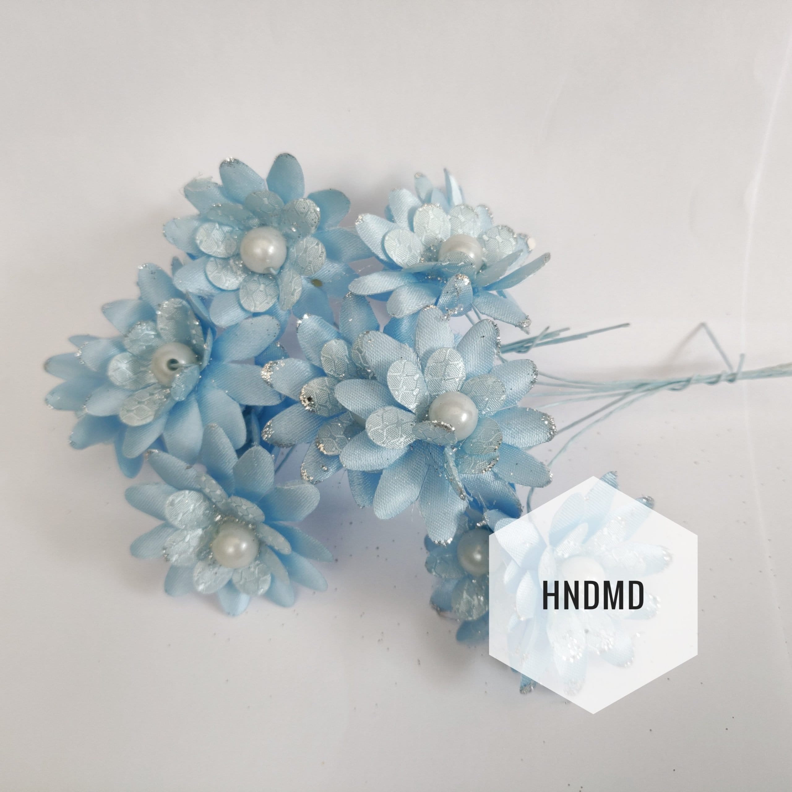 Fabric Glitter Flowers - Baby Blue (Pack of 12)Fabric Glitter Flowers – Baby Blue (Pack of 12)