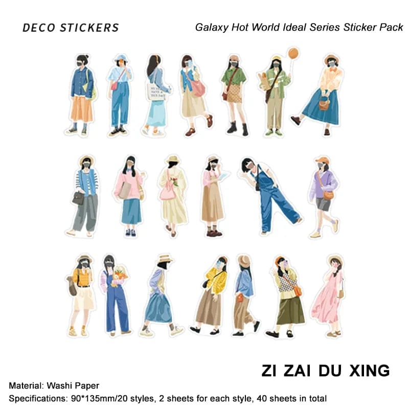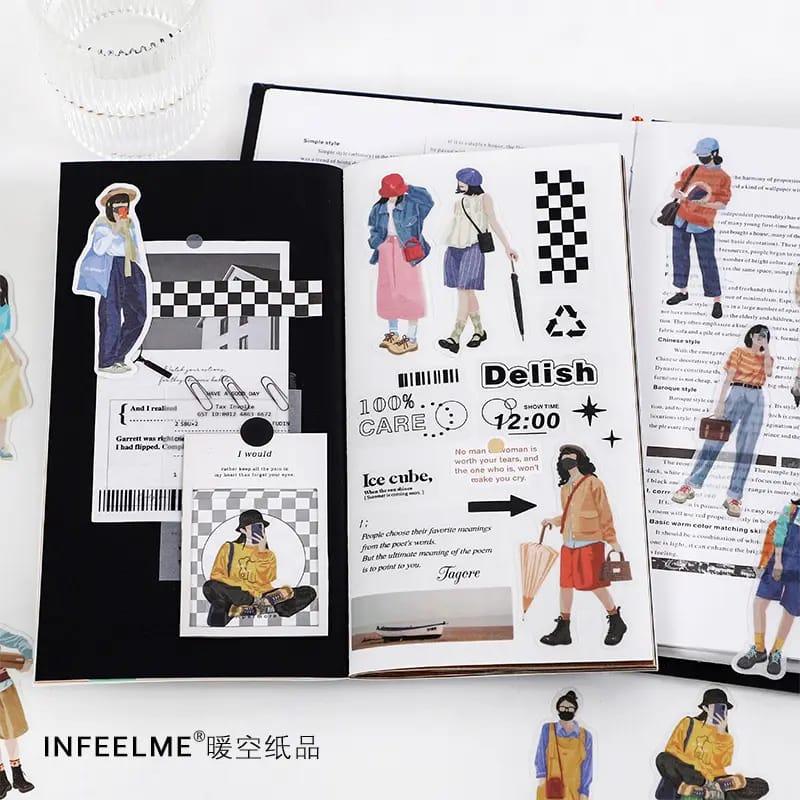 These are translucent stickers of girls, 20 in pack 2 per design and you need to peel the backing off and stick them to the journals.