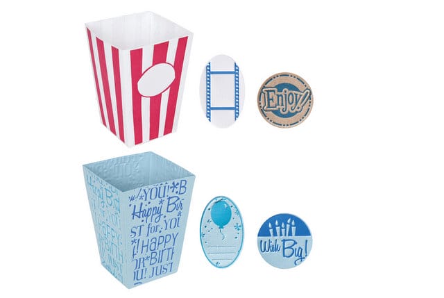 Thick Material Large Design Sets include a die and a set of assorted letterpress plates. They cut thick materials (like chipboard, paper, vellum, foil, cardstock and more). Once the material is die-cut and letterpressed, simply fold as instructed for a dimensional embellishment. All large Design Sets are intended for use with standard 30 x 30 cm / 12″ x 12″ cardstock.