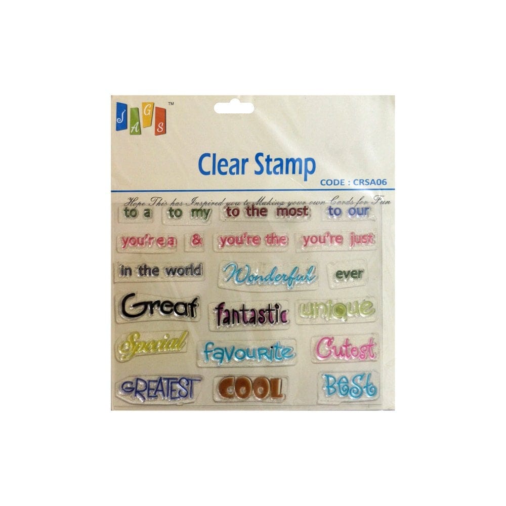 This 5.5 by 7 inch set and contains 20 pieces of individual stamps.