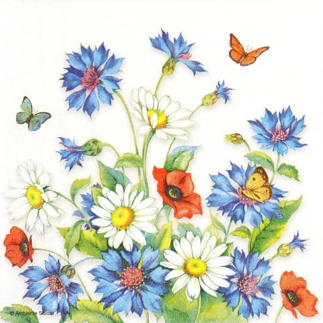 German Decoupage Napkins (5 pcs)  - Cornflower