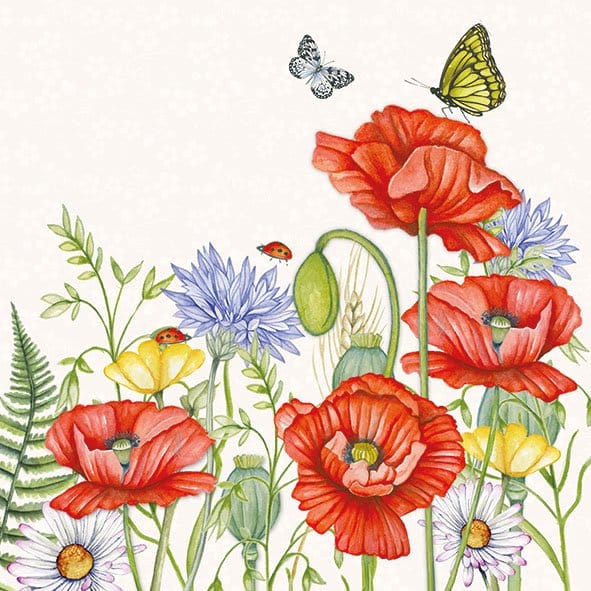 A pack contains 5 decoupage napkins and each napkin is 12 by 12 inch, folded to 6 by 6 inch.