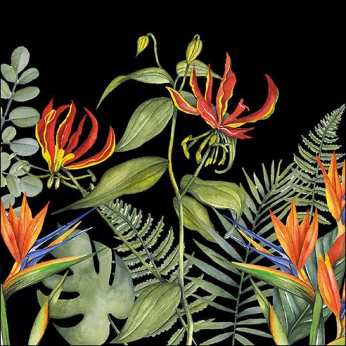 German Decoupage Napkins (5 pcs) - Tropical Flowers Black