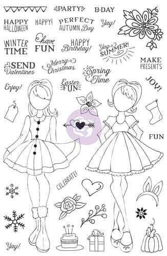 Stamp all year round with the Holiday Bliss Clear Acrylic Stamps by Julie Nutting for Prima! The package contains 38 themed stamps on a 4″ x 6″ storage sheet that is hole punched to fit in your planner.