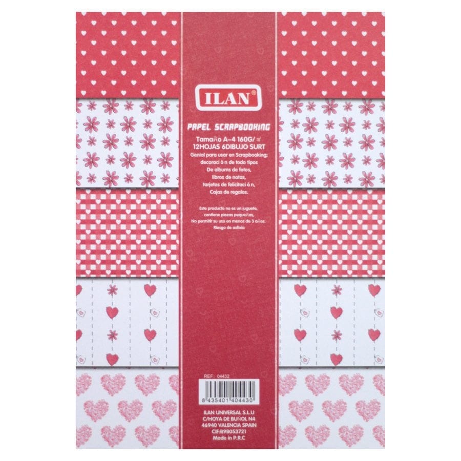 Ilan A4 Paper Pack - Hearts and Flowers (Set of 12 sheets)