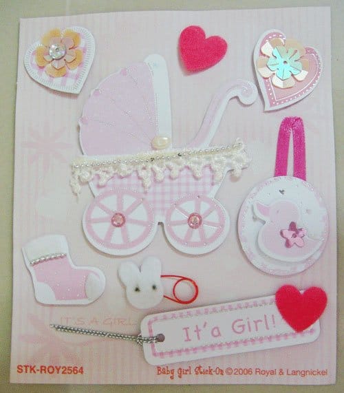 Each package includes 8 dimensional baby stickers perfect to add those little touches to your baby projects
