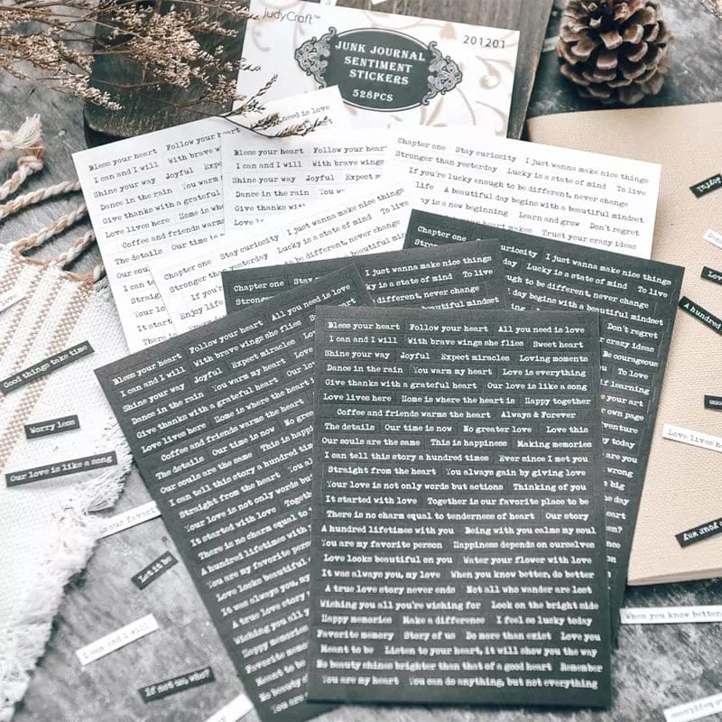 Junk Journal Sentiment Stickers (Black and White) – 528 sentiments