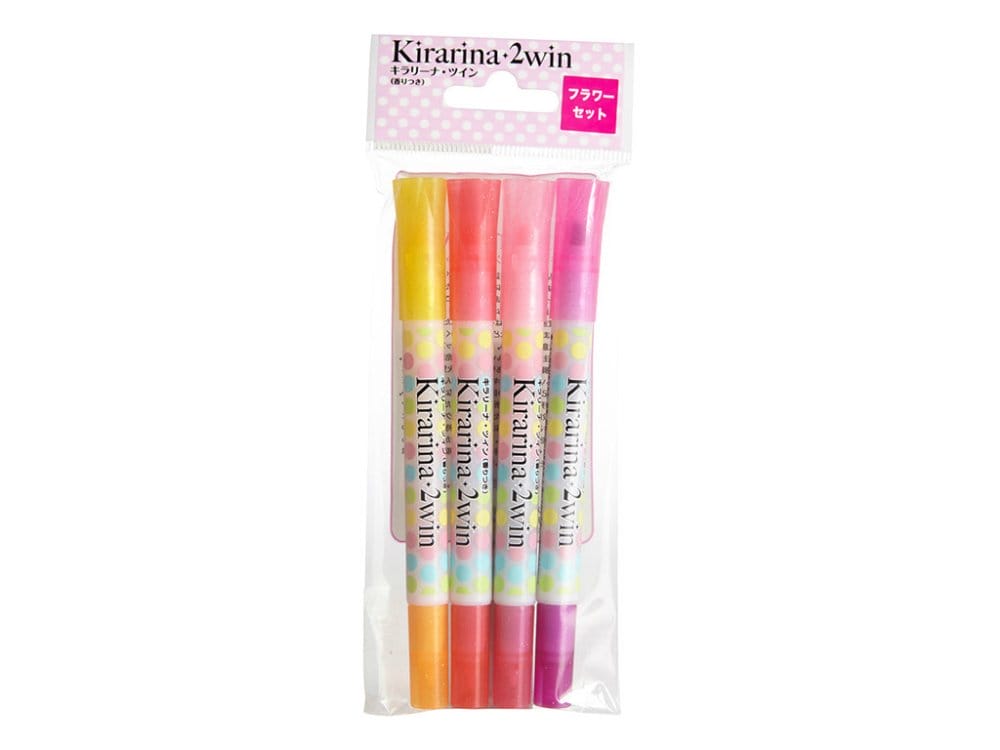 Add a fragrant touch to your projects with the Kirarina 2win scented marker. This double ended marker offers a light and dark shade of each color and includes a wide nib and a fine nib. 2win is the perfect tool for doodling, journaling and day planner art. Because this marker is water-based, it will work best on regular copier paper or stationary.