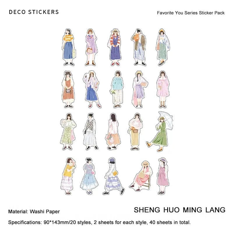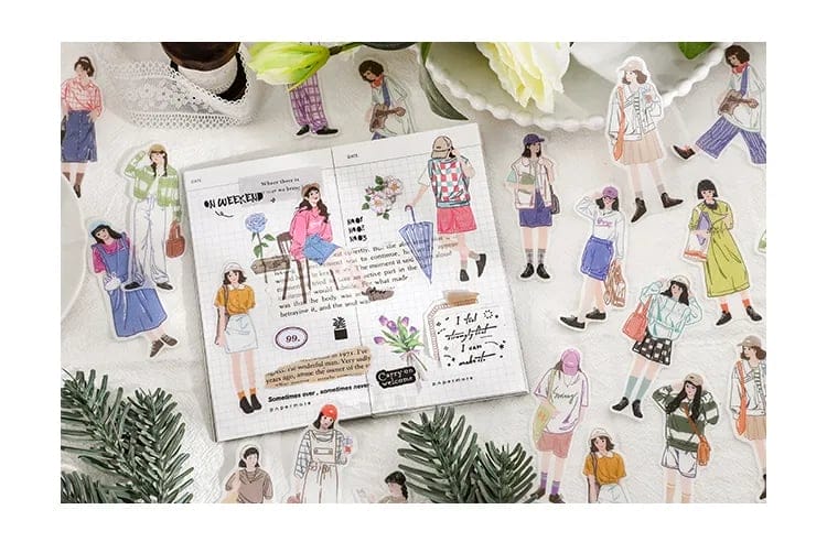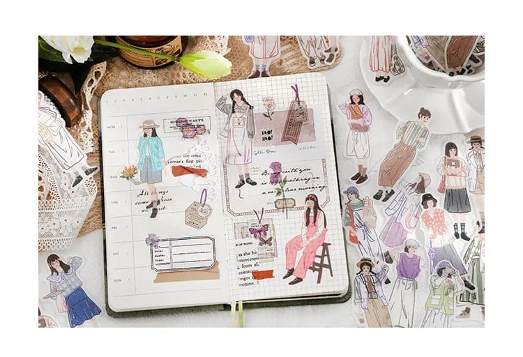 These are translucent stickers of girls, 20 in pack 2 per design and you need to peel the backing off and stick them to the journals.