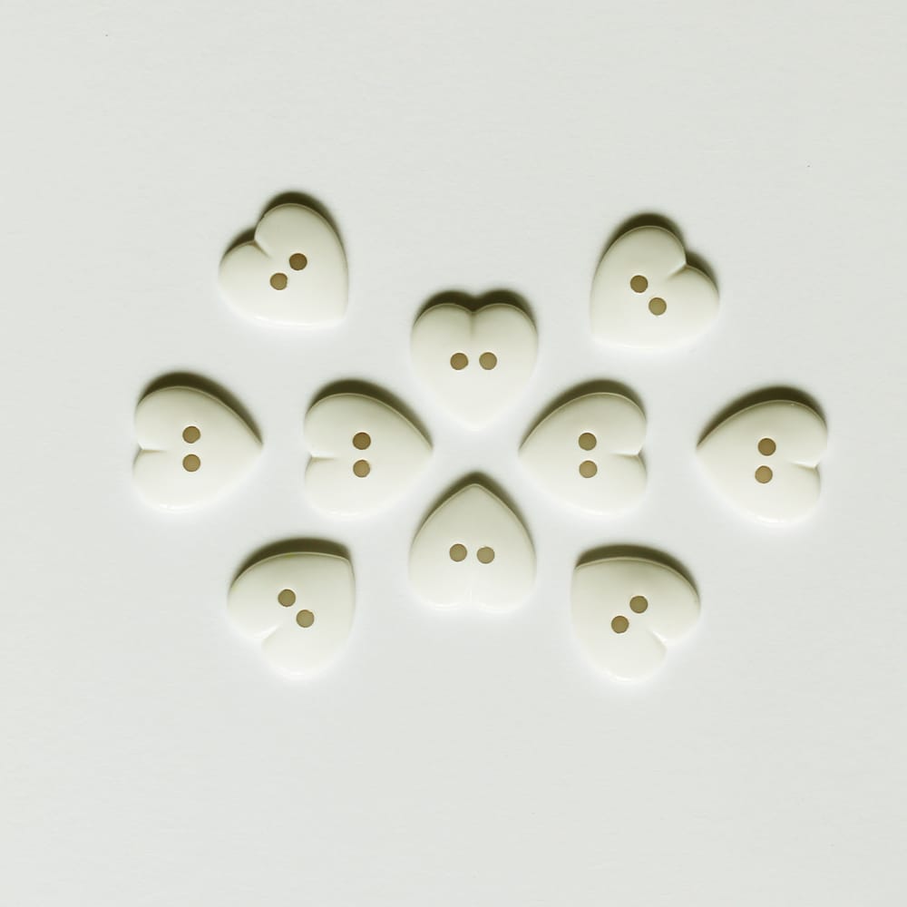 Large Plastic Heart shaped Buttons – White