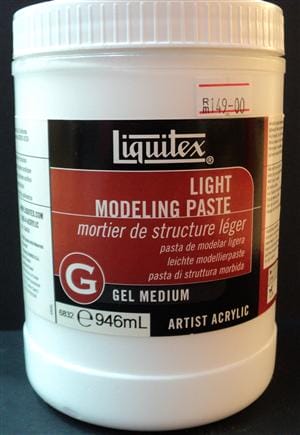 *A lightweight, airy, flexible, thick, sculptural gel specifically formulated to be used in thick applications where weight is a factor. Will not exhibit “mud cracking”.*Used alone, will dry to a matte opaque white that readily accepts staining if desired