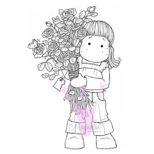 By mixing andmatching you can create your own special artwork. This stamp shows Tilda holding a bunch of roses
