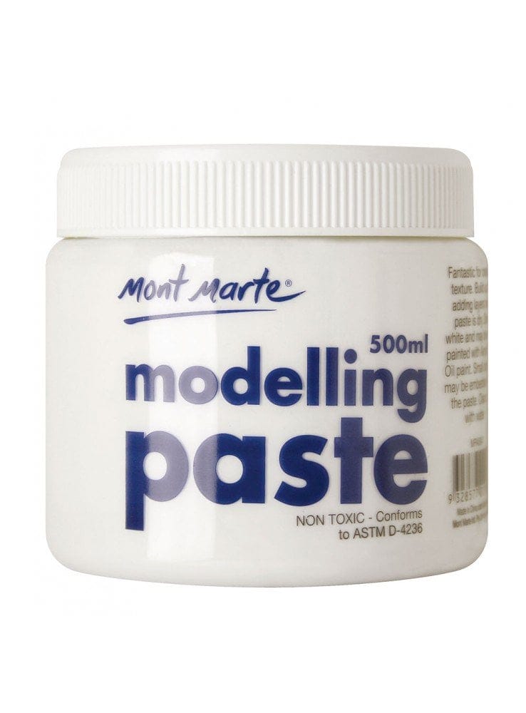 Mont Marte Modelling Paste is fantastic for creating textured backgrounds on a variety of surfaces. Depth of texture can be built up by adding layers once paste is dry. Small objects may also be embedded into the paste for other 3D effects. Great when applied with Mont Marte Palette Knives. Clean up with water.
