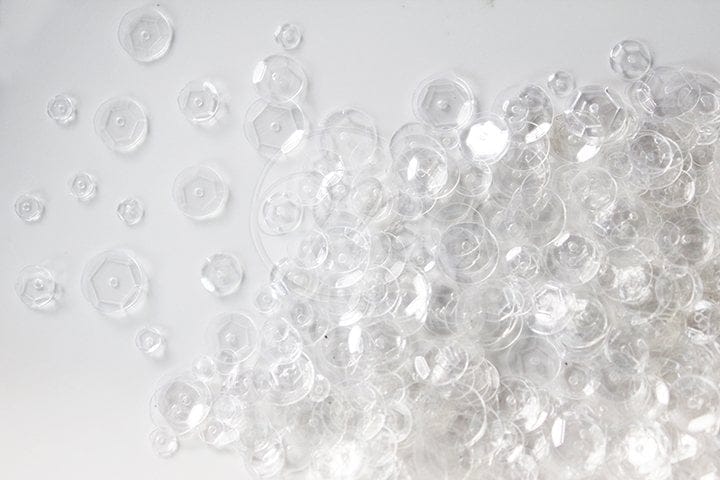Clear Couture Sequins. Made In India. Mixed Sizes: 10mm, 8mm, 6mm, 4mm