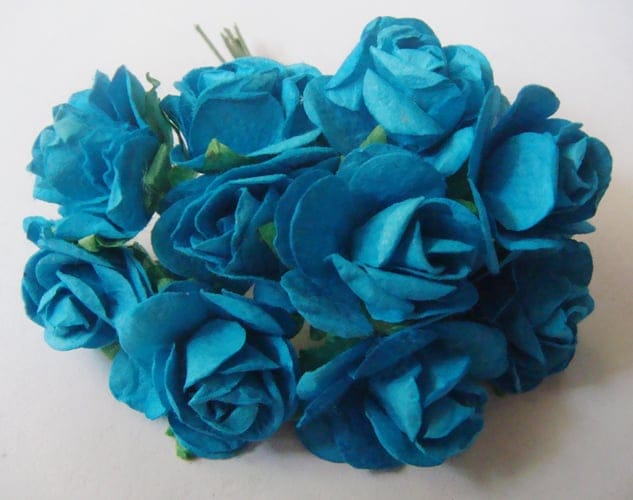 Mulberry Paper Roses (1 inch) - Blue (Pack of 10 flowers)