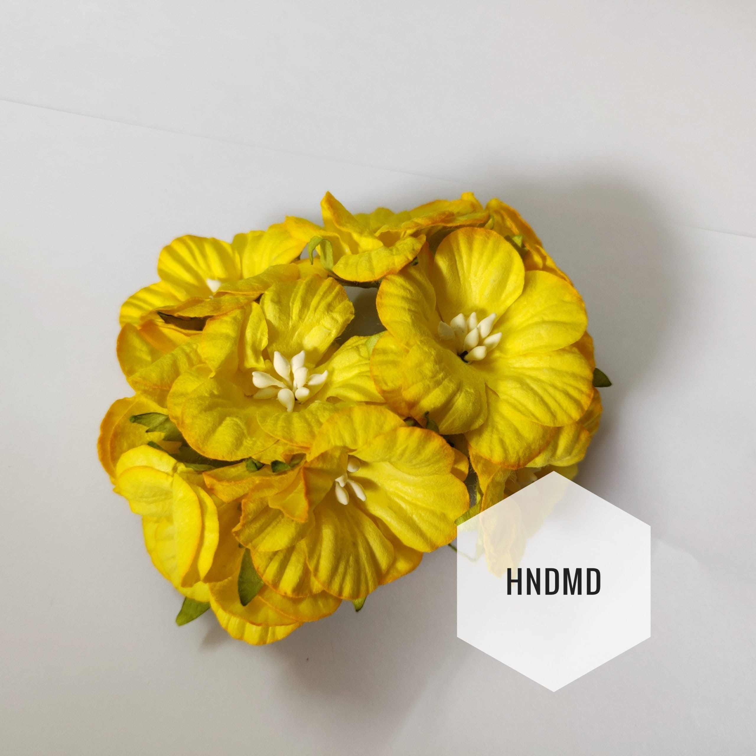 These mulberry flowers are handmade and can be used for a huge variety of projects like – Wedding boxes, scrapbooking projects, cards, nameplates and much more..