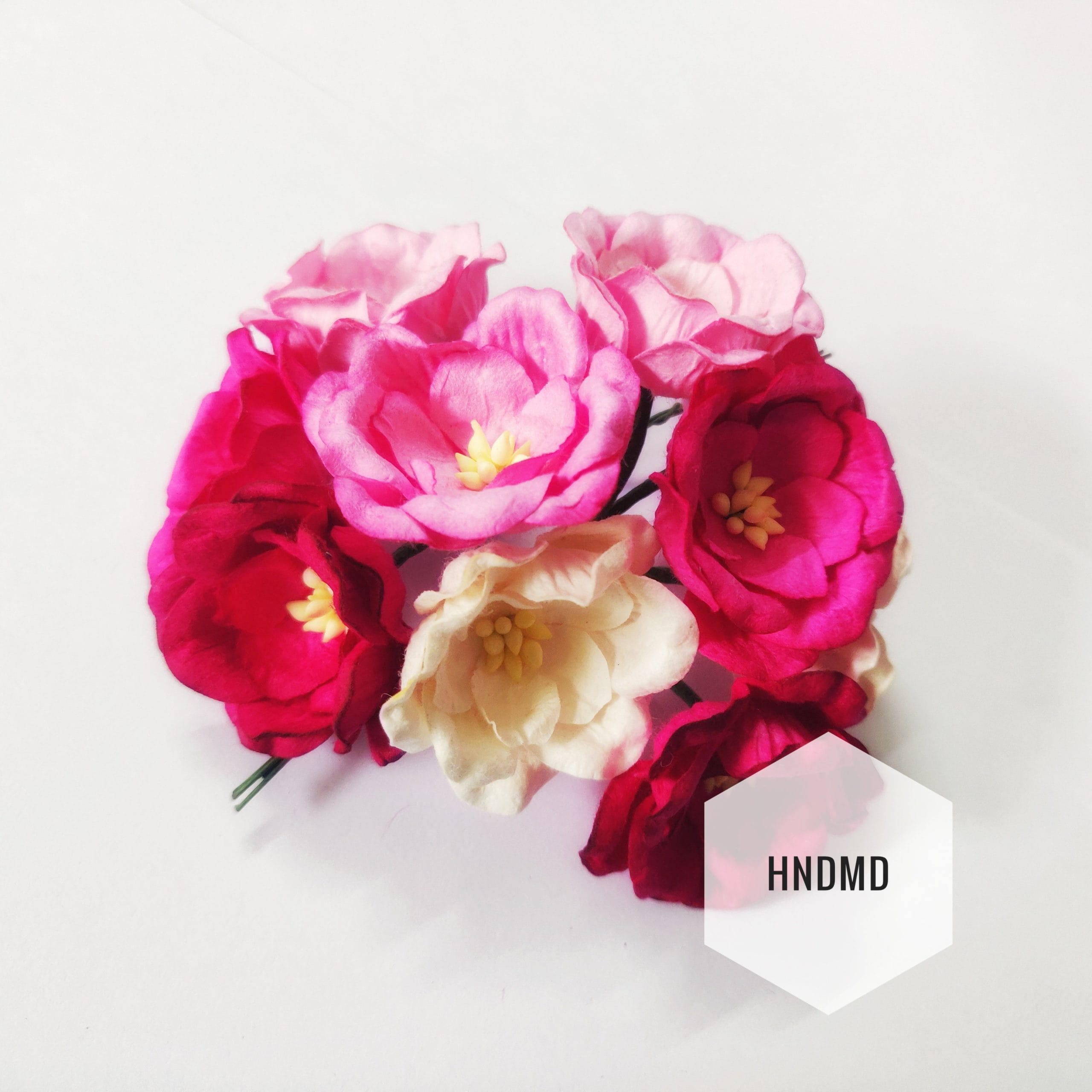 These mulberry flowers are handmade and can be used for a huge variety of projects like – Wedding boxes, scrapbooking projects, cards, nameplates and much more..
