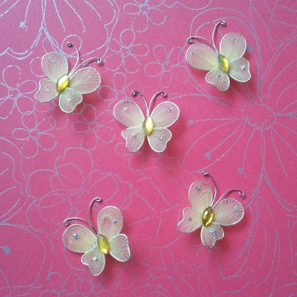 Butterfly embellishments made out of net. Again the use is limited to your imaginations. Some of the uses are scrapbooking projects, mixed media projects, handmade cards or event a piece of clothing !!