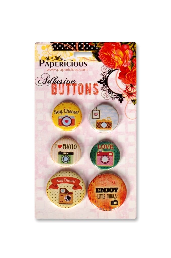 Papericious Self-Adhesive Metal Buttons. Button-up any idea with these round metal buttons! Just peel and stick, you’ll love adding these buttons to crafts, scrapbook pages and more for that one-of-a-kind look you desire. And with around 6 themes, you know you’ll have plenty to embellish with.
