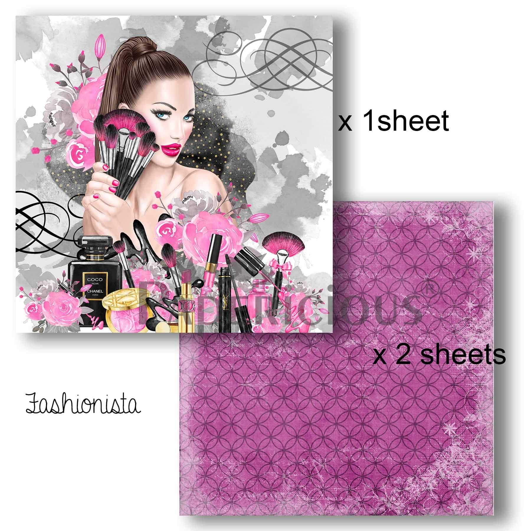 Papericious Decoupage Paper Pack - Fashionista (8 by 8 inch) - 3 sheets