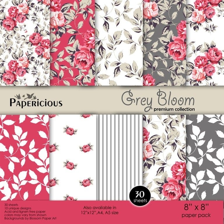 Papericious Premium Collection – Grey Bloom (8 by 8 patterned paper)