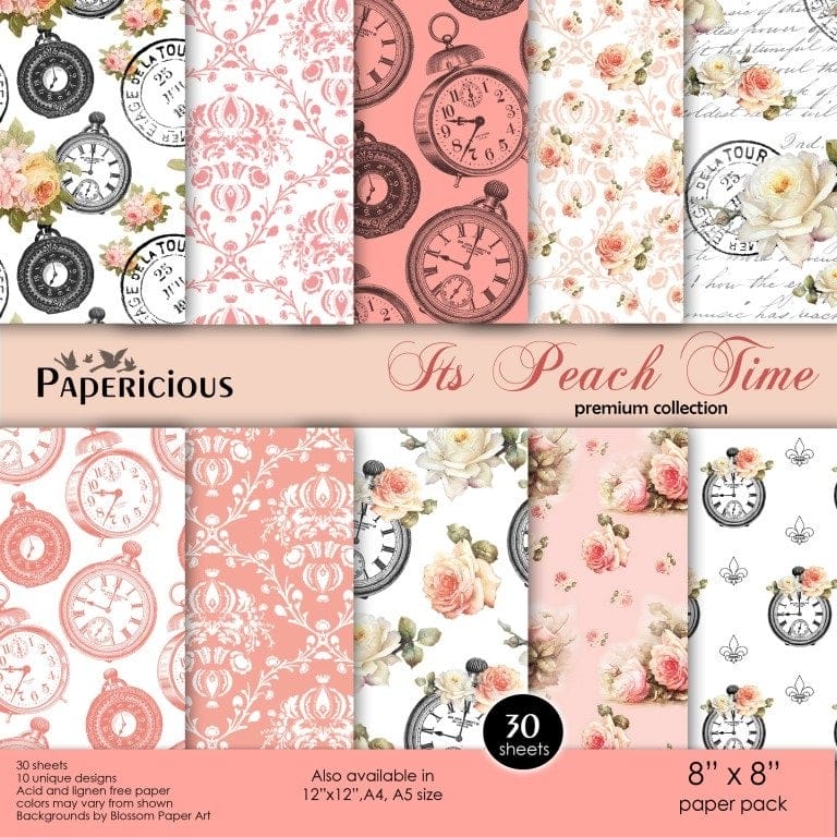 Papericious Premium Collection - Its Peach TIme (8 by 8 patterned paper)