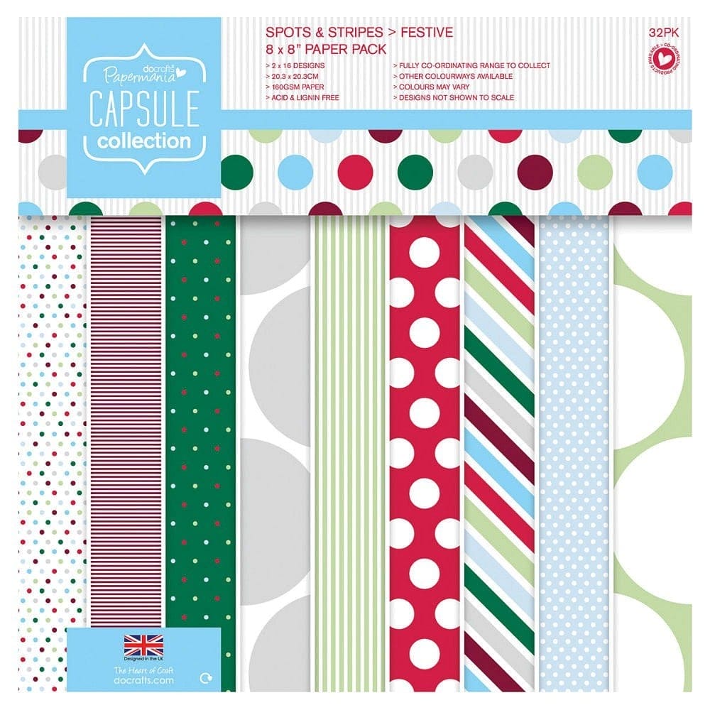 Papemania Capsule Collection – Spots & Stripes 32 sheets (16 designs), 8 X 8″ 160gsm. Acid free.