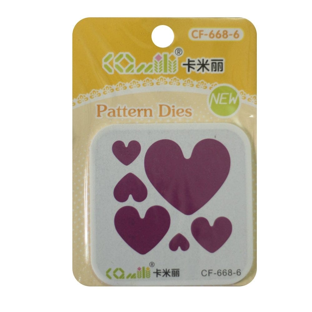 Dimensions : This die cuts multiple hearts from 3.5 cm by 3.5 cm to 1 cm by 1 cm