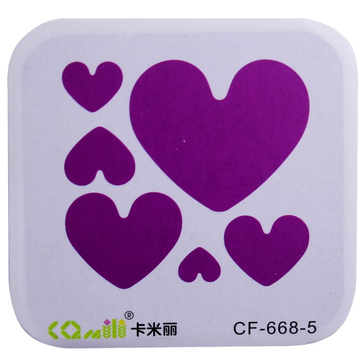 Dimensions : This die cuts multiple hearts from 3 cm by 3 cm to 0.75 cm by 0.75 cm
