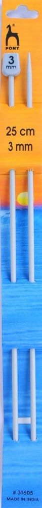 The most widely recognized form of knitting needle is the knobbed needle or the single-pointed needle. These are straight needles tapered to a point at one end, with a knob at the other end to prevent stitches from slipping off. Such needles are always used in pairs. The aluminum finish tends to produce faster knitting