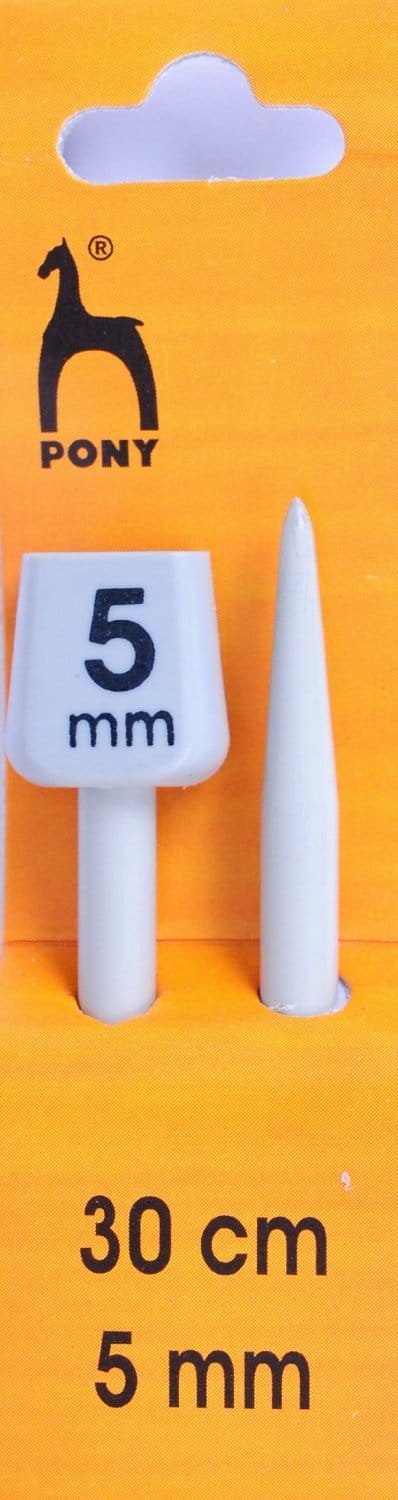The most widely recognized form of knitting needle is the knobbed needle or the single-pointed needle. These are straight needles tapered to a point at one end, with a knob at the other end to prevent stitches from slipping off. Such needles are always used in pairs. The aluminum finish tends to produce faster knitting