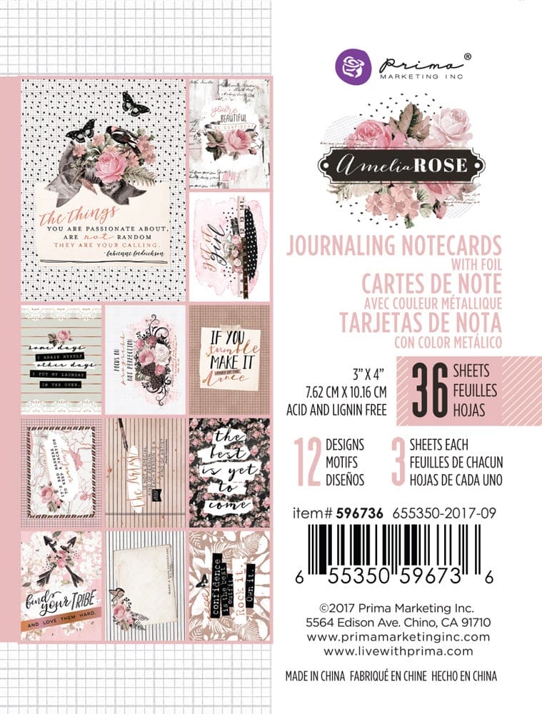 Prima – Amelia Rose Collection – 3 x 4 Journaling Cards with Foil Accents