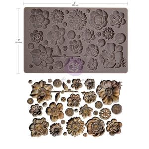 Florals with attitude. These aged, layered blooms are textured to feel timeworn and beautifully imperfectideal for mixed-media work with a grungy, poetic edge. A signature design by Finnabair for Prima Marketing. Made from durable, food-safe silicone. Use with resin, wax, modelling material, or edible mediums.