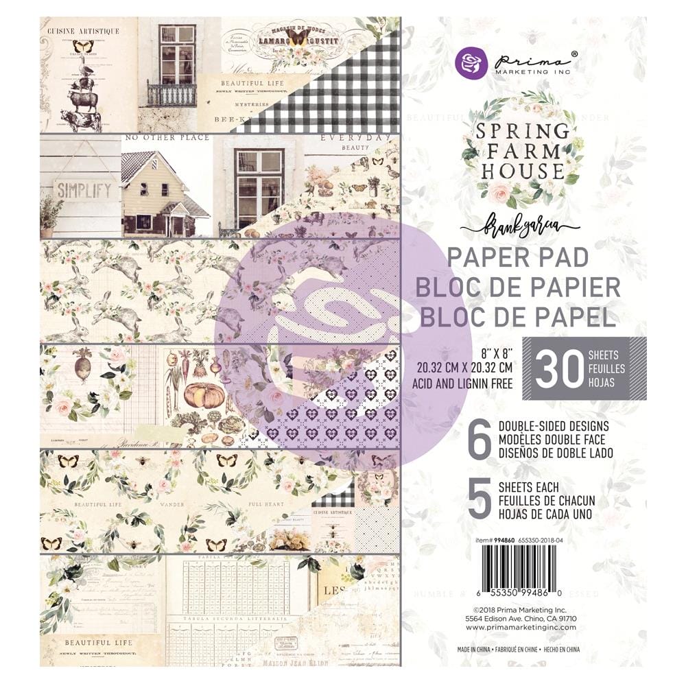 Prima - Spring Farmhouse - 8by8 Paperpack (30 double sided sheets)