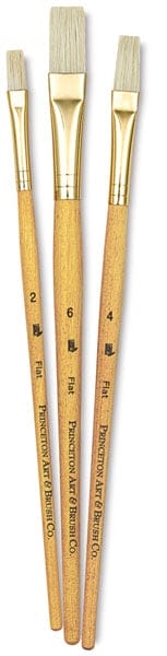 This natural bristle set contains three short handled brushes: Flat 2, 4, and 6. Use them for oils and acrylics.